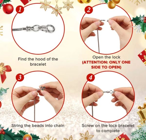Karácsonyi adventi naptár, amely 22 medált és 2 karkötőt tartalmaz, hogy két bájos karkötőt készíthessen.